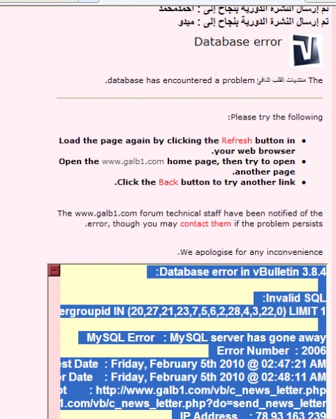 عندما اقوم بارسال النشره الدوريه بجصل داتابيز ايرور