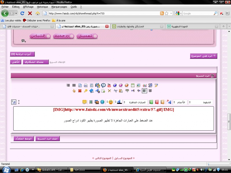 المشكلة الثانية هي ظهور كود ادراج صورة بدل من الصورة