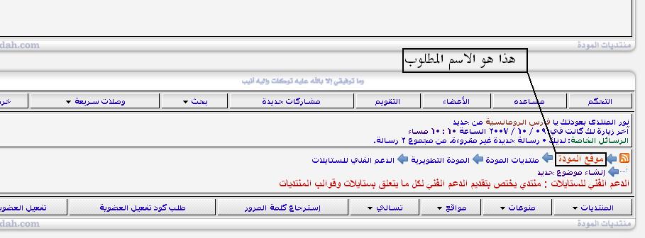 فضلت افكر من امبارح ( انا اساسا ما بصمم استايلات ولا اعرف الكود المسئول عن ظهور اسم المنتدي )