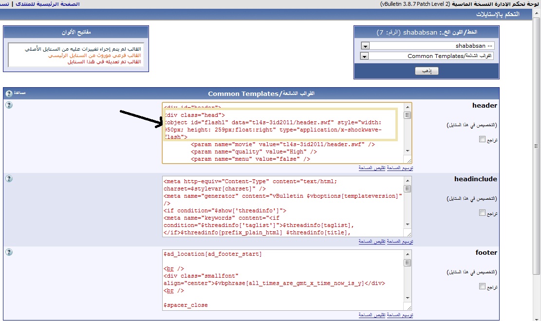 أخي الكريم إذهب إلى لوحة تحكم الإدارة >>> الإستايلات و القوالب >>> التحكم بالاستايلات >>>> إختر الإستيل المطلوب و إضغط كلمة إذهب