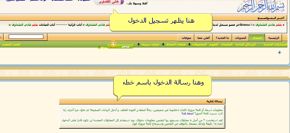 وارجو من الاخوة التى تعرف المشكلة التى تسبب بهذة المشكلة وحلها عن طريق المنتدى وليس عن طريق تسجيل الخروج الذى حليت بة هذة المشكلة