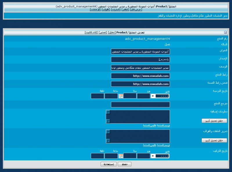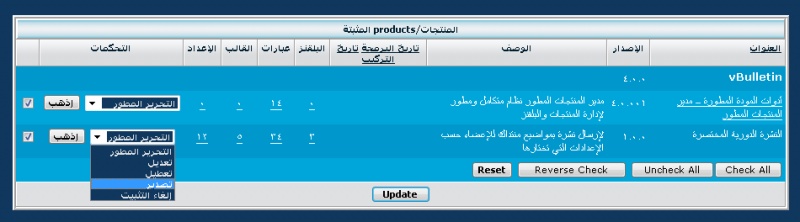 أدوات المودة المطورة ــ مدير المنتجات المطور مخصص للفي بي نسخة 4.0 وأحدث وهو عبارة عن تعريب سريع لمنتج متطور جدا لإدارة المنتجات والبلقنز وتعريبها ويساعد كثيرا في إدارة وتعديل وتركيب وحذف وتعريب المنتجات ... هو إضافة مهمة جدا لمطوري المنتجات وكذلك من يستخدم عدة هاكات في منتداه حيث سهولة إدارتها وتعطيلها وتفعيلها .