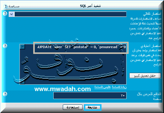 رد: شرح : افراغ كافة الرسائل الخاصة + تهيئة ملف config.phpلتنفيذ أمر SQL