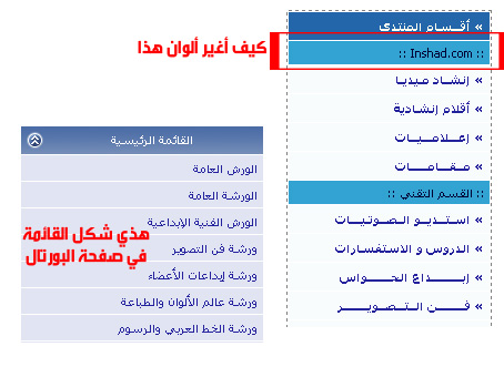 ويكون لونها غير عن لون المنتدى نفسه