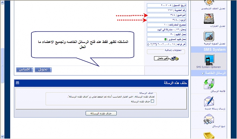 اواحه مشكله في عدد المواضيع والردود للعضو فقط عند فتح الرسائل الخاصه نشوف الصوره