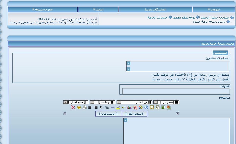 واذا جيت ترسل رسالة خاصة للعضو ما يظهر اسمه على طول بالرغم اني اضغط على الاسم لارسال الرسالة