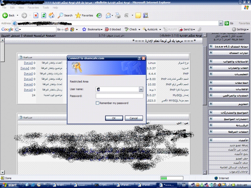 وعندي مشكله تانيه لو سمحتوا كل ما بكبس من لوحه تحكم الادمن على حظر الاعضاء او عرض الاعضاء المحظورين بيطلعلي النافذه تبع الحمايه منشان اكتبله كلمه السر واسم المستخدم ولو كتبتبهم ما بييصير اي شي غير انه بتضل تطلع شو المشكل ؟