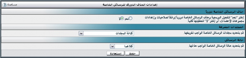 - لوحة تحكم الإدارة -> خيارات المنتدى -> إعدادات الحذف الدورى للرسائل الخاصة