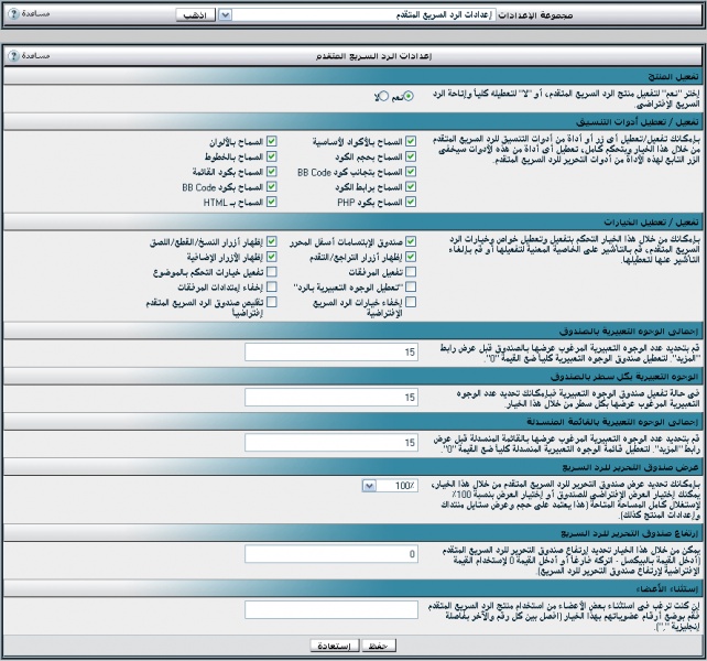 - لوحة تحكم الإدارة -> خيارات المنتدى -> إعدادات الرد السريع المتقدم