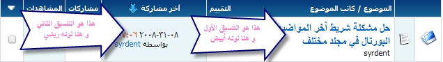 كود:.header { BACKGROUND-IMAGE: url(folder name of your forum /headerbg.gif); COLOR: #ffffff BACKGROUND-REPEAT: repeat-x; BACKGROUND-COLOR: #053679; }