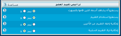 ومن خيارات تراخيص تقييم العضو تكون كالتالي