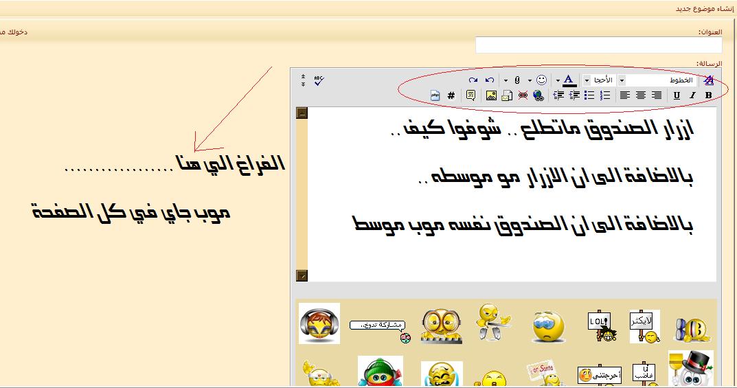 وهي ان الصندووق او خيارات الصندوووق لا تظهر عند كتابة موضوع ... فقط تظهر بالرد السريع