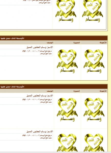 افتراضي الاوسمة مكررة في الملف الشخصي يوجد صورة