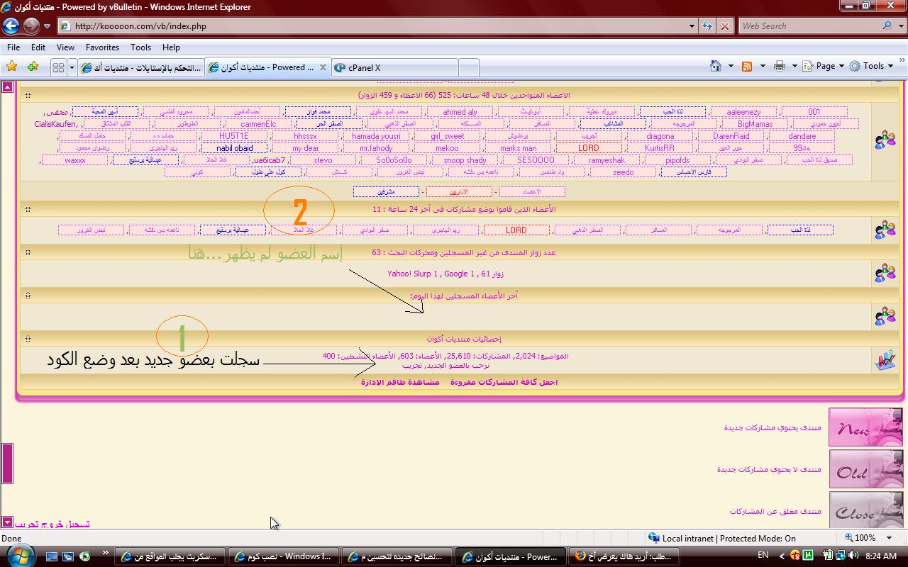 لقد ظهر قسم الأعضاء المسجلين لهذا اليوم...ولكنه لا يعرض أي عضو..أنظر للصورة للتوضيح في المرفقات
