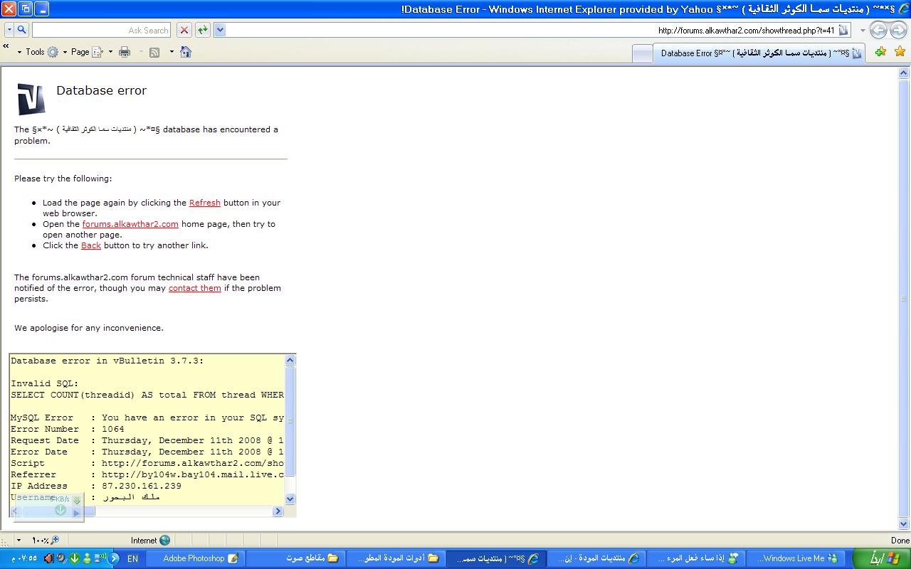 Error Date : Thursday, December 11th 2008 @ 10:31:55 AM