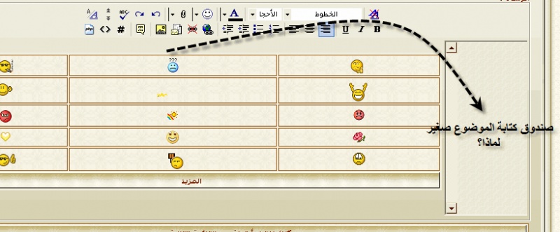 عندما اقوم بكتابة موضوع جديد او رد جديد اشاهد خانة الموضوع صغيره جداً شاهد وما هو الحل؟