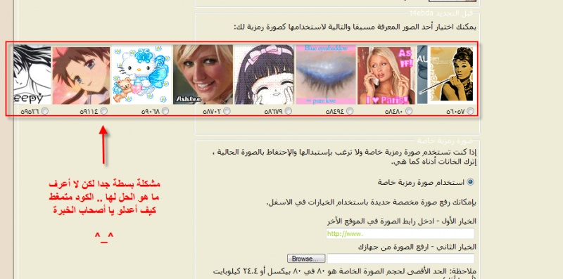 افتراضي مشكلة بسيطة .. [ كود الصور الرمزية به خلل ] ... أرجو المساعدة