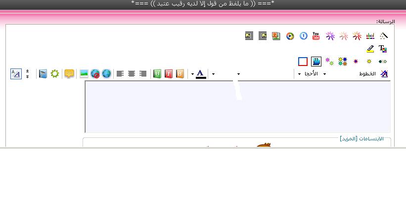 هذا الحل من الاخ ابو راشد في نفس موضوع الهاككود:<if condition="$show['editor_toolbar']"> <!-- هاك عام ـ توسيط أزرار محرر الرد السريع --> <!-- لحذف الهاك نحذف السطر التالي --> <center> <div id="{$editorid}_controls" class="controlbar"> <!-- هاك عام ـ توسيط أزرار محرر الرد السريع --> <!-- تم حذف width="100%" من الجدول التالي ويتم إعادتها لحذف الهاك --> <table cellpadding="0" cellspacing="0" border="0"> <tr> <td><div class="imagebutton" id="{$editorid}_cmd_removeformat"><img src="$stylevar[imgdir_editor]/removeformat.gif" width="21" height="20" alt="$vbphrase[remove_text_formatting]" /></div></td> <if condition="$show['basic_bbcode']"> <td><img src="$stylevar[imgdir_editor]/separator.gif" width="6" height="20" alt="" /></td> <td><div class="imagebutton" id="{$editorid}_cmd_bold"><img src="$stylevar[imgdir_editor]/bold.gif" width="21" height="20" alt="$vbphrase[bold]" /></div></td> <td><div class="imagebutton" id="{$editorid}_cmd_italic"><img src="$stylevar[imgdir_editor]/italic.gif" width="21" height="20" alt="$vbphrase[italic]" /></div></td> <td><div class="imagebutton" id="{$editorid}_cmd_underline"><img src="$stylevar[imgdir_editor]/underline.gif" width="21" height="20" alt="$vbphrase[underline]" /></div></td> </if> <if condition="$show['color_bbcode']"> <td><img src="$stylevar[imgdir_editor]/separator.gif" width="6" height="20" alt="" /></td> <td><div class="imagebutton" id="{$editorid}_popup_forecolor" title="$vbphrase[colors]"> <table cellpadding="0" cellspacing="0" border="0"> <tr> <td id="{$editorid}_color_out"><img src="$stylevar[imgdir_editor]/color.gif" width="21" height="16" alt="" /><br /><img src="$vboptions[cleargifurl]" id="{$editorid}_color_bar" alt="" style="background-color:black" width="21" height="4" /></td> <td class="alt_pickbutton"><img src="$stylevar[imgdir_editor]/menupop.gif" alt="" width="11" height="16" /></td> </tr> </table> </div></td> </if> <if condition="$show['url_bbcode'] OR $show['img_bbcode']"> <td><img src="$stylevar[imgdir_editor]/separator.gif" width="6" height="20" alt="" /></td> </if> <if condition="$show['url_bbcode']"> <td><div class="imagebutton" id="{$editorid}_cmd_createlink"><img src="$stylevar[imgdir_editor]/createlink.gif" width="21" height="20" alt="$vbphrase[insert_link]" /></div></td> </if> <if condition="$show['img_bbcode']"> <td><div class="imagebutton" id="{$editorid}_cmd_insertimage"><img src="$stylevar[imgdir_editor]/insertimage.gif" width="21" height="20" alt="$vbphrase[insert_image]" /></div></td> </if> <if condition="$show['quote_bbcode']"> <td><img src="$stylevar[imgdir_editor]/separator.gif" width="6" height="20" alt="" /></td> <td><div class="imagebutton" id="{$editorid}_cmd_wrap0_quote"><img src="$stylevar[imgdir_editor]/quote.gif" width="21" height="20" alt="$vbphrase[wrap_quote_tags]" /></div></td> </if> <!-- هاك عام توسيط أزرار محرر الرد السريع --> <!-- تم حذف السطر التالي ويعاد لحذف الهاك --> <!-- <td width="100%"> </td> --> <if condition="is_browser('ie')"> <td><div class="imagebutton" id="{$editorid}_cmd_spelling"><img src="$stylevar[imgdir_editor]/spelling.gif" width="21" height="20" alt="$vbphrase[check_spelling]" /></div></td> </if> <td> <div class="imagebutton" id="{$editorid}_cmd_resize_0_99"><img src="$stylevar[imgdir_editor]/resize_0.gif" width="21" height="9" alt="$vbphrase[decrease_size]" /></div> <div class="imagebutton" id="{$editorid}_cmd_resize_1_99"><img src="$stylevar[imgdir_editor]/resize_1.gif" width="21" height="9" alt="$vbphrase[increase_size]" /></div> </td> <if condition="$show['wysiwyg_compatible']"> <td><div class="imagebutton" id="{$editorid}_cmd_switchmode"><img src="$stylevar[imgdir_editor]/switchmode.gif" width="21" height="20" alt="$vbphrase[switch_editor_mode]" /></div></td> </if> </tr> </table> </div> <!-- هاك عام ـ توسيط أزرار محرر الرد السريع --> <!-- لحذف الهاك نحذف السطر التالي --> </center> </if> <div class="controlbar" style="padding-$stylevar:8px"> <fieldset style="border:0px; padding:0px; margin:0px"> <if condition="$show['qr_require_click']"> <textarea name="message" id="{$editorid}_textarea" rows="10" cols="60" style="width:100%; height:{$editor_height}px" tabindex="1" dir="$stylevar[textdirection]" disabled="disabled">$vbphrase[click_quick_reply_icon]</textarea> <else /> <textarea name="message" id="{$editorid}_textarea" rows="10" cols="60" style="width:100%; height:{$editor_height}px" tabindex="1" dir="$stylevar[textdirection]"></textarea> </if> </fieldset> <!--width:$stylevar[messagewidth]--> </div> <input type="hidden" name="wysiwyg" id="{$editorid}_mode" value="$editortype" /> <input type="hidden" name="styleid" value="$session[styleid]" /> <script type="text/javascript"> <!-- vB_Editor['$editorid'] = new vB_Text_Editor('$editorid', $editortype, '$forumid', '$parsesmilie'); var QR_EditorID = '$editorid'; //--> </script>