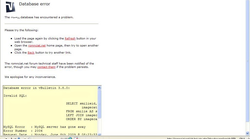 Error Date : Monday, June 8th 2009 @ 08:20:47 AM