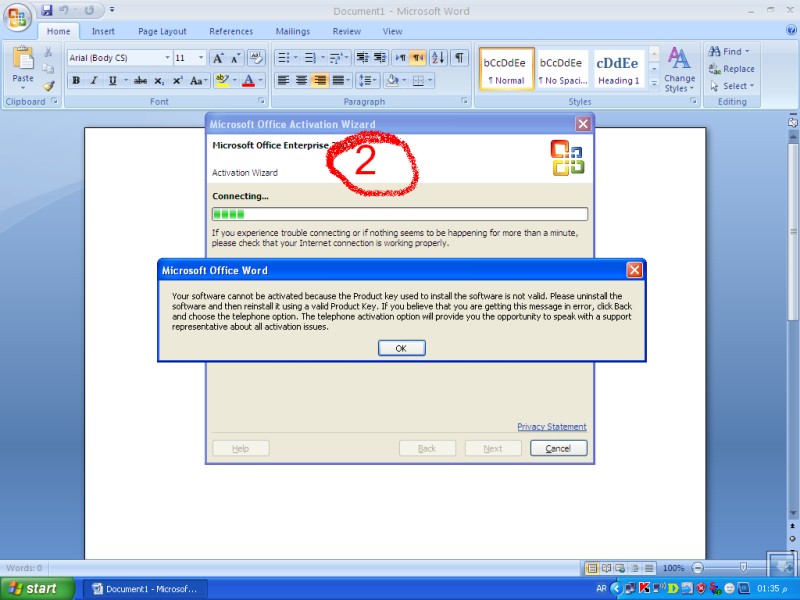من يومين حملت برنامج (word enterprise)الورد العربي 2007 ولكن اللغه لم تضهر لديه عربيه بل ضهرت انكليزيه وعملت تغير للغه من البروكرام والتولس والستنكس وغيرت الى العربيه ورستت الحاسبه ونفس الحاله لم يتغير شيء ارجو المساعدة وشيء ثاني عندما افتح الورد تضهر عندي هذه الصورة ادناه اعمل لها نكست بس العمليه ما تنجحعلما باني وضعت له مفتاح للنسخه ما هية المشكله ارجو مساعدتي وجزاكم الله خير