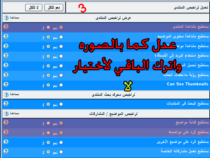 وبتعدل جميع المجموعات على الاعدادات الي بالصوره 2 الخطوه 3 بأستثناء ...... الاداريين وال مراقب العام