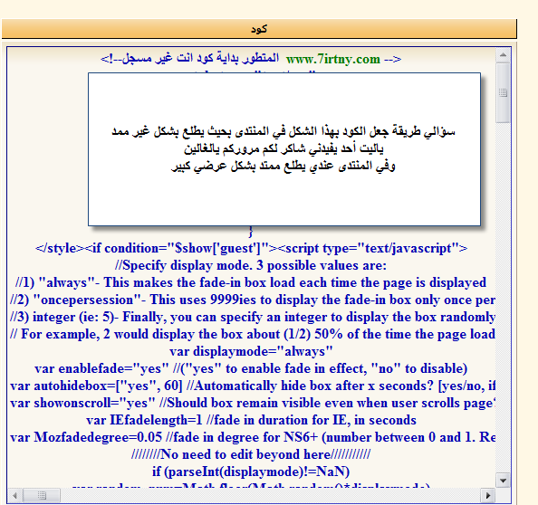 في المنتدى عندى عندما أكتب كود داخل php يكون متمدد بشكل فضيع لكن عندكم هنا في المودة يكون الكود شكلة حلو ولايتمدد