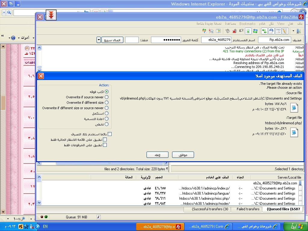 لما اجي أرفع ملفات المنتدى ببرنامج الاف تي يطلع لي نافذة مثل ما هو موجود في الملفات المرفقة