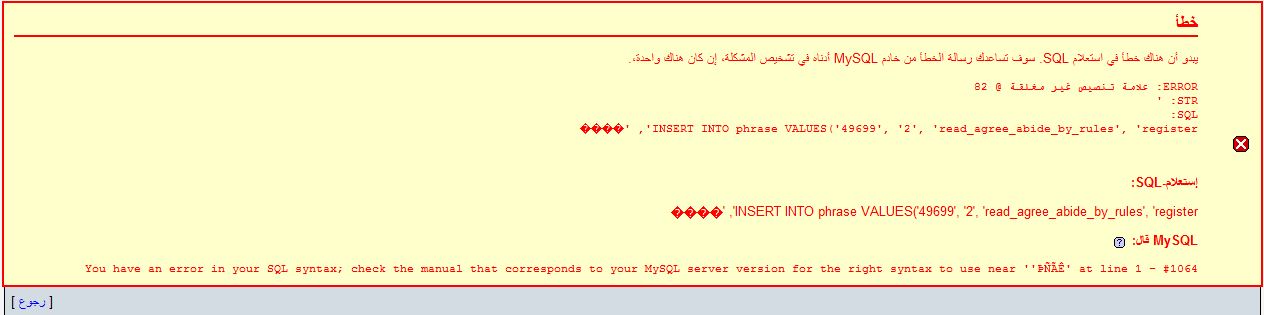يبدو أن هناك خطأ في استعلام SQL. سوف تساعدك رسالة الخطأ من خادم MySQL أدناه في تشخيص المشكلة، إن كان هناك واحدة،.