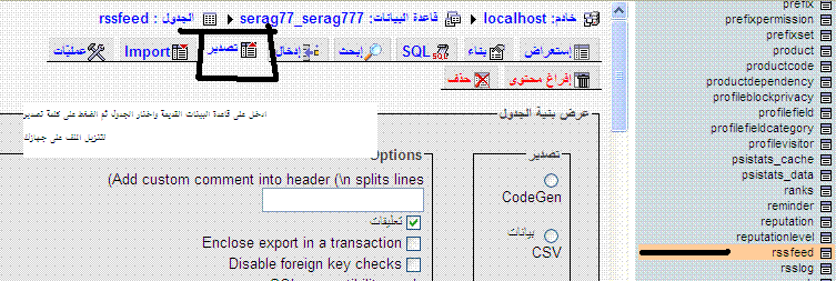 اخواني الاعضاء عندي جدول ناقص في قاعدة البيانات الجديده وعندما اذهب للقاعده القديمه اشوفه موجود