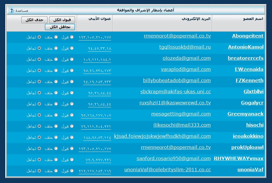 قبل يومين تم تسجيل 16 عضو بأسماء وهمية عربية ، وانجليزية