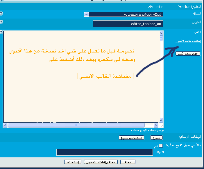 بس قبل ما تضغط عليه أخذ نسخة من القالب وضعها في مفكرة حتى نسلم من الاخطاء