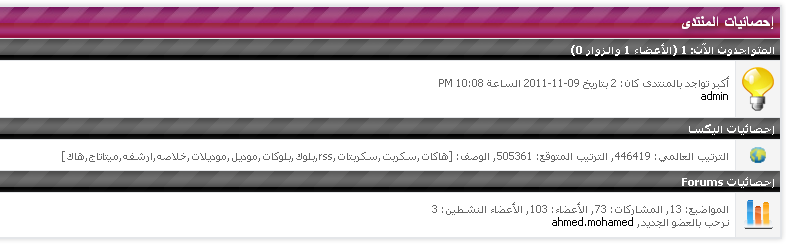 يظهر ترتيب المنتدى بالاحصائيات اسفل الصفحة الرئيسية