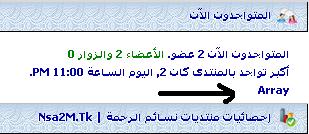 وهى ان فى المتواجدين الان مش بيظهر اسماء الاعضاء غير اسم واحد وهو Array مهما كان عدد الاعضاء وحاولت اخفى المتواجدون الان مش بتختفى مثال : بالمرفقات