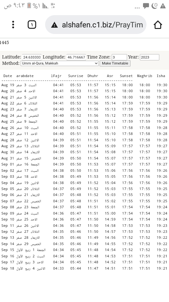 اقدم لكم سكربت اوقات الصلاة شهريا بخيارات الطول والعرض وفارق التوقيت والمذهب