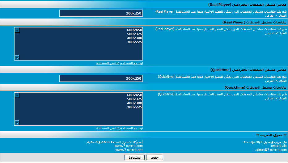 - امكانية تحديد مقاس افتراضى لمشغلات المحطات