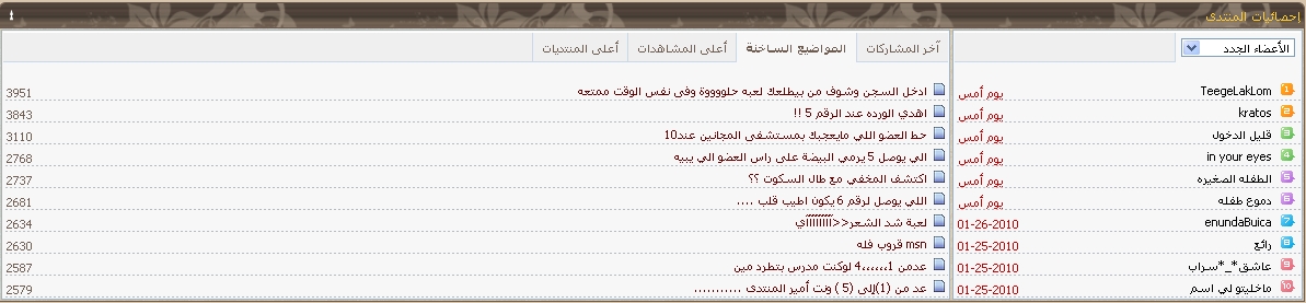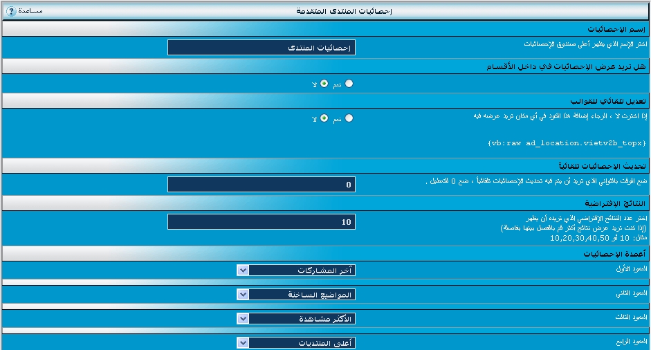 طريقة عرض الإحصائيات أسفل المنتدى :